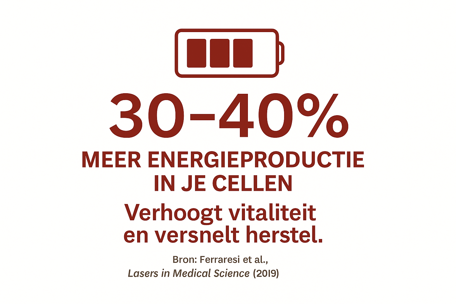 In elke cel zitten mitochondriën (je energiefabriekjes). Rood en nabij-infrarood licht geven deze een boost, waardoor je lichaam efficiënter herstelt en beter functioneert.